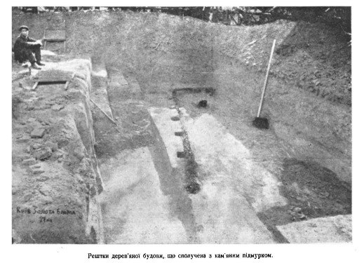 - З періоду розкопок Золотих Воріт збереглося одне цікаве архівне фото: на ньому зображено залишки дерев’яних балок від середньовічної київської брами. На наступний день після виготовлення цих фото дерев’яних залишок воріт уже не знайдуть: вночі безпритульні використали їх як дрова для вогнища.