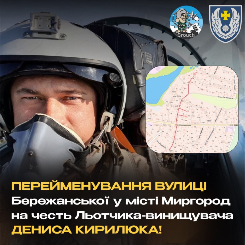 Сьогодення вимагає, аби назви вулиць транслювали вершину Української міці та незламності, утверджували нашу унікальну силу та ідентичність. Ми прагнемо, аби ім’я Дениса Кирилюка на мапі України стало могутнім підписом миргородського льотного козацтва, а вшанування пам’яті героїв – окремим руслом культури, в яке варто спрямовувати наш великий потенціал та глибокий мотив почуття вдячності.