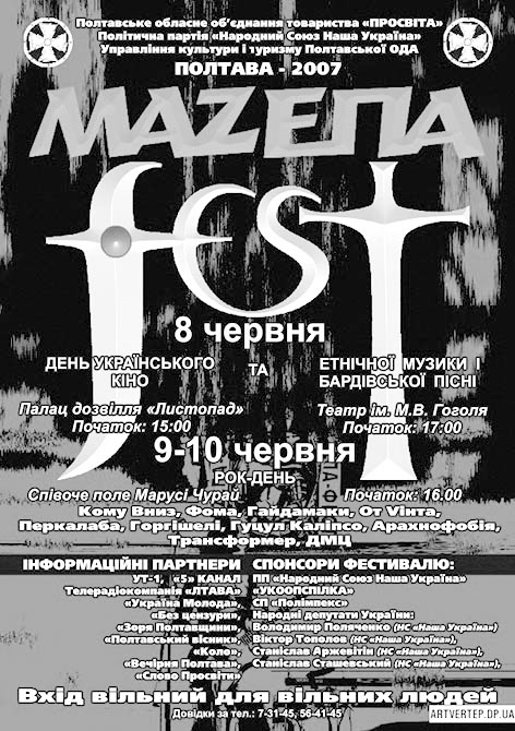 «Я думаю, фестиваль виконував свою культурну роль і в Полтаві, і навіть за її межами. На відбірковому конкурсі в Дніпрі якось розмовляв із музикантами гурту “Кімната Гретхен”, і вони, російськомовні діти, прекрасно мене розуміли. Усі їхні прихильники – російськомовні, нічого не знають про Україну, душа гола, пам’яті історичної немає, проте їхня музика, і вони хочуть потрапити на фестиваль, де виступали їхні кумири. Хлопці мене питали: “А чому тільки україномовні команди? Чому гетьман Мазепа?” Я їм все розповів, і вони відчули правду, бо молоді не можна брехати», – ділиться спогадами Микола Кульчинський.