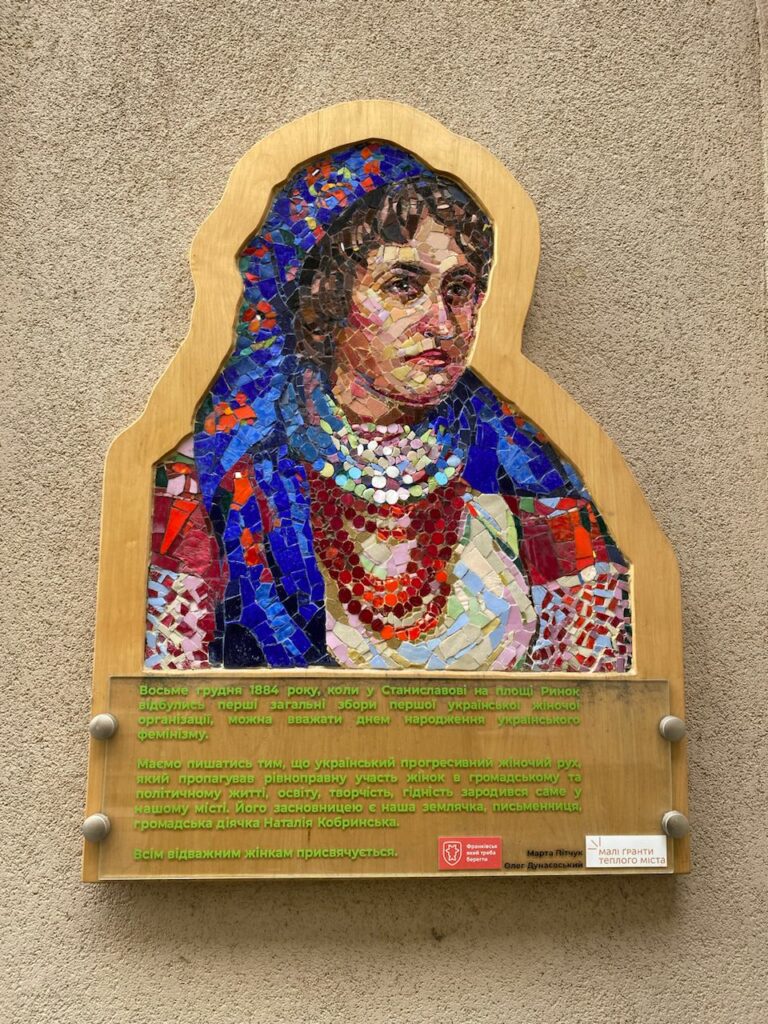 По-друге, у місті експериментують з форматами. Моя окрема любов — це мозаїчна пам’ятна дошка Наталії Кобринській — засновниці першої жіночої організації в Україні. Ця дошка виглядає цікаво та яскраво — одразу хочеться роздивитися її поближче і сфотографувати. Як на мене, така логіка роботи з пам’яттю — найправильніша.