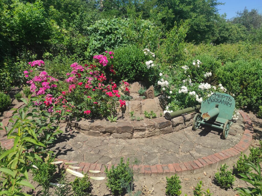 Типовий військторг на Донбасі. В асортименті одяг, взуття, наплічники, кепки, ножі, шеврони – статутні й з армійським гумором. «Зам по ніх…ям», «Головний розп…дяй», «Пи…датий, але жонатний» або навпаки «Пи…датий і не жонатий», «Куніметник».