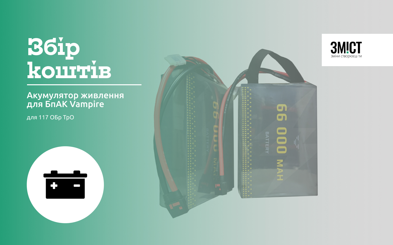 Додаткові акумулятори для безпілотників – це можливість продовжити виконання завдань підрозділами, а отже і знищення більшої кількості ворогів. Зараз отримали запит від військовослужбовців 117 бригади територіальної оборони, яка працює на Курському напрямку на купівлю додаткових акумуляторів живлення для безпілотних авіаційних комплексів Vampire.
