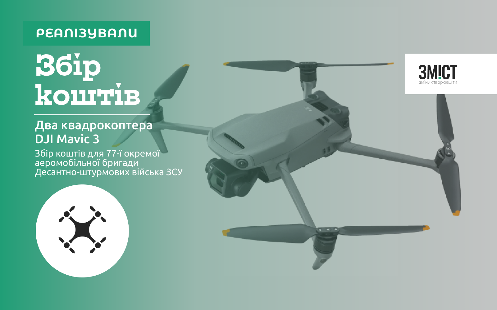Для воїнів-полтавців 77-ї окремої аеромобільної бригади Десантно-штурмових військ Збройних сил України, збираємо на два квадрокоптери DJI Mavic 3.