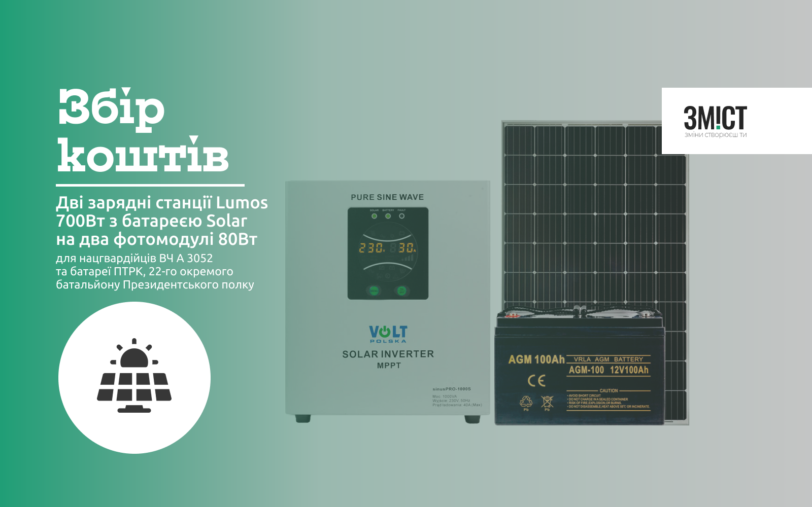 Одразу два підрозділи звернулися з проханням допомогти придбати зарядну станцію Lumos 700 Вт із батареєю Solar на два фотомодулі 80 Вт, аби тримати техніку та засоби зв’язку зарядженими завжди.