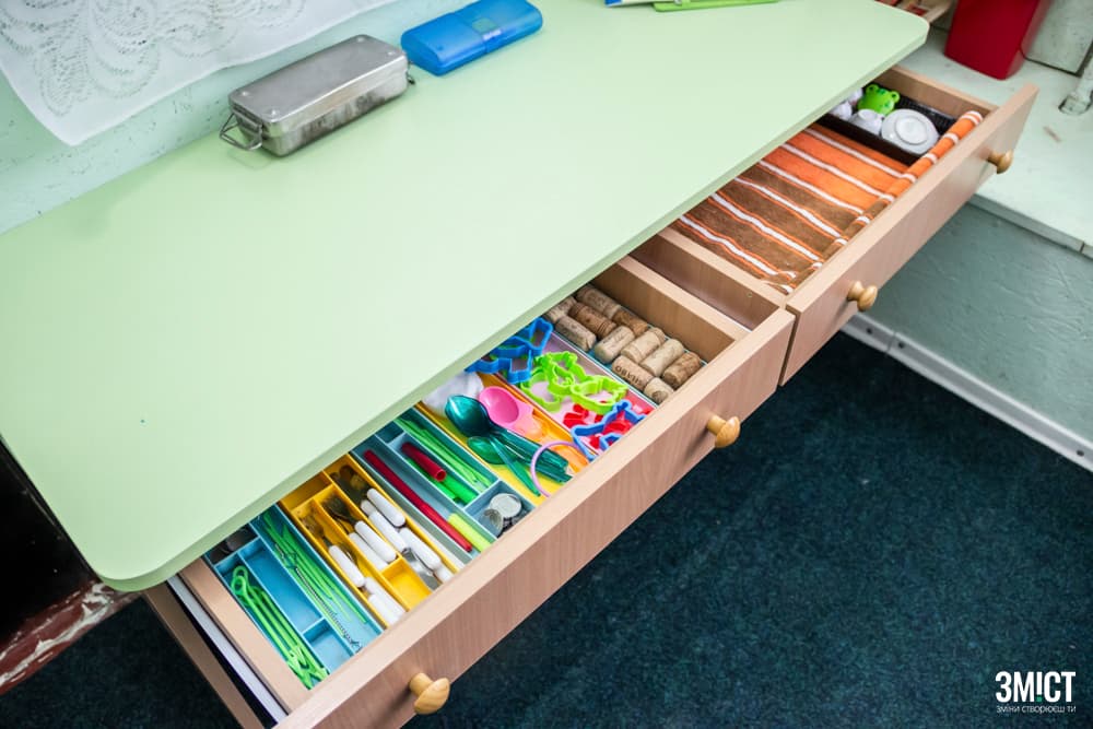 – Ми з тих грошей викрутили по максимуму. Вистачило навіть на емаль для старих стільців та приладдя для фарбування. Ми знайшли парти, які нам потрібні, але дешевше. Взяли на одну менше, аби купити огорожі-тинии й лак для них. У нас діти з польовою поведінкою. Вони скакають по столах, залізають на меблі, вікна. А вікна в нас низькі, тому вихованці весь час сидять на підвіконнях. І те, що обривають жалюзі постійно – то півбіди. Але ж дітки звідти й падають. А так ми убезпечили їх огорожами. Будемо декорувати по сезонах – і весело, і безпечно, – говорить Ельвіра Попова, голова навчально-реабілітаційного центру «Соняшник».
