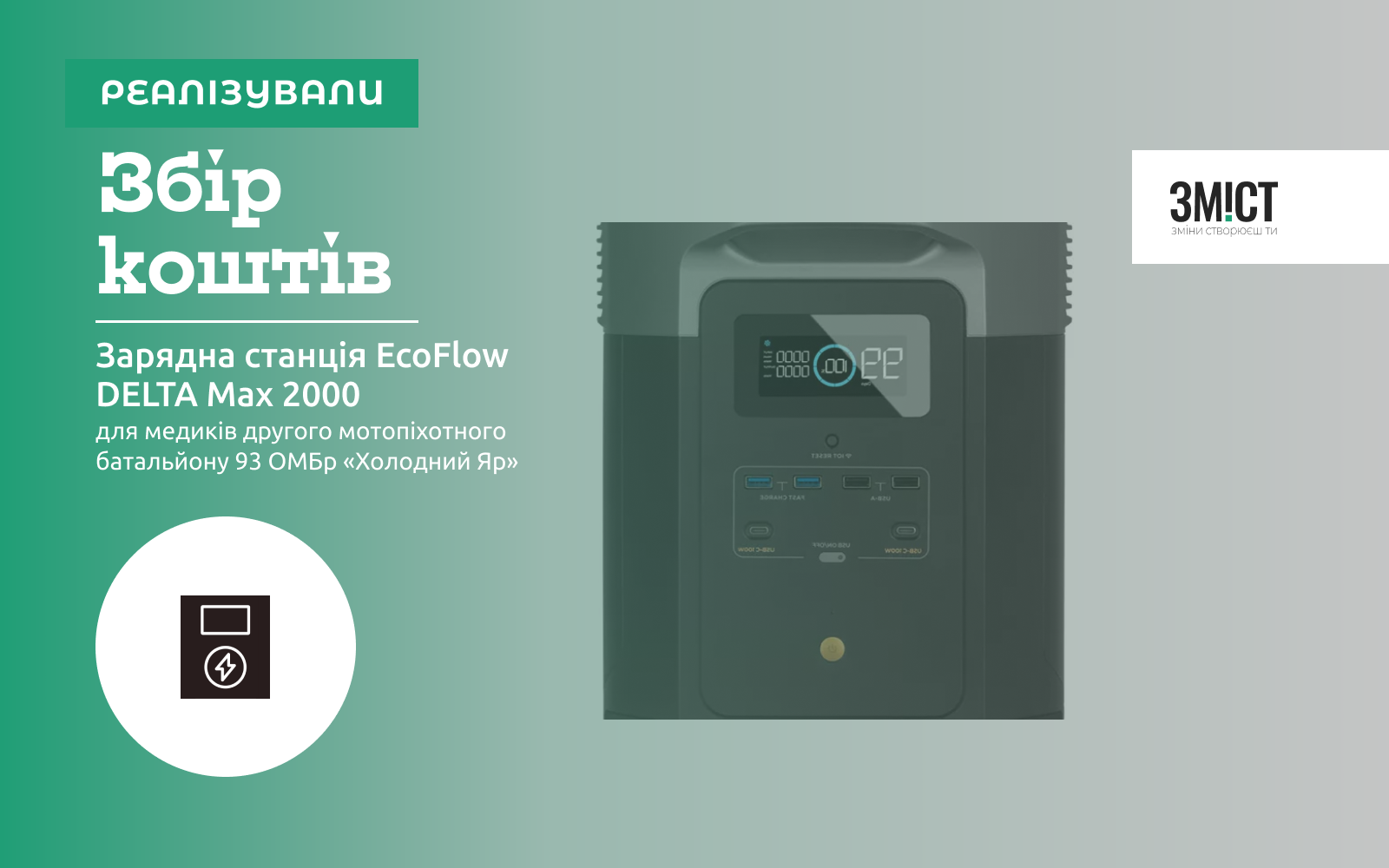 Тому отримавши запит від медиків другого мотопіхотного батальйону 93 ОМБр «Холодний Яр» які вже давно працюють на Бахмутському напрямку, оголошуємо збір на зарядну станцію EcoFlow DELTA Max 2000, яка допоможе медикам мати безперервне живлення для забезпечення їх роботи в бойових умовах.