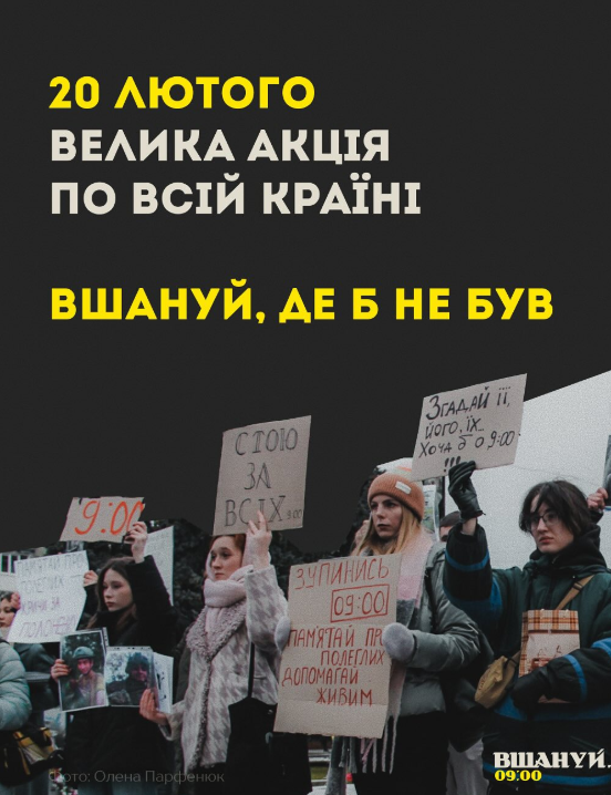 У середу 19 лютого у Полтаві не буде централізованої акції на одній локації. Проте, організатори закликають долучитися до великої акції по всій Україні. «Вшануй, де б не був» відбудеться 20 лютого у четвер, о 9:00: