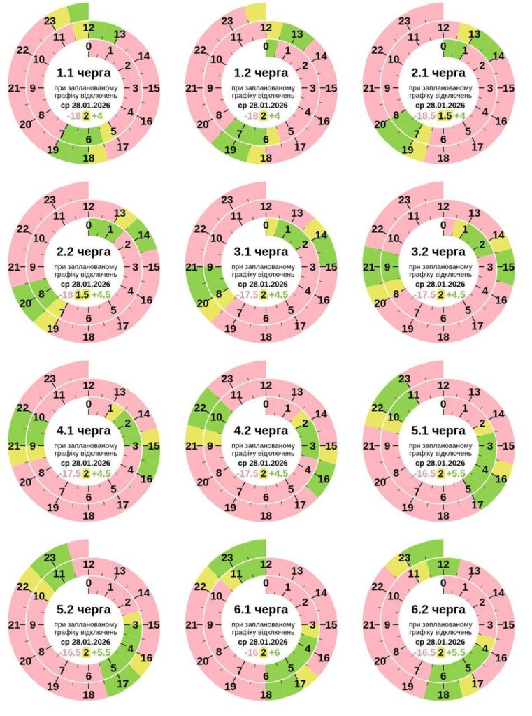 Графік погодинних відключень світла на 28 січня: