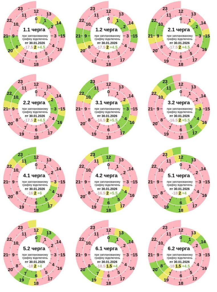 Графік погодинних відключень світла на 30 січня:
