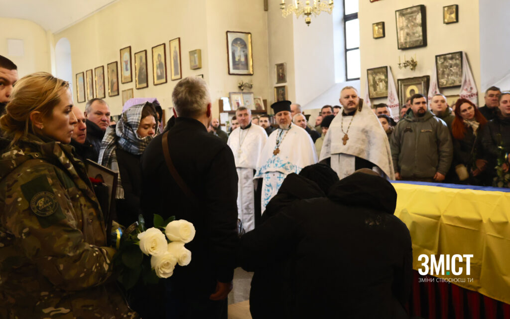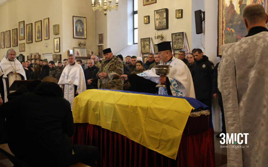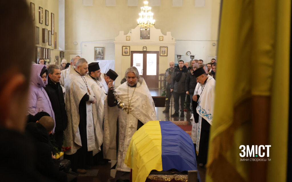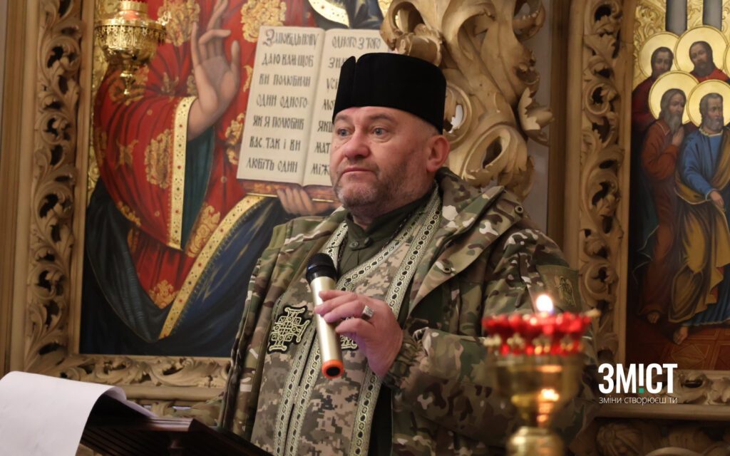 «Герой у боротьбі з сатанинською, російською, московитською ордою. Вшановуємо гідно памʼять героя, памʼятаючи ціль і меті. заради котрої він боровся і загинув. Вшануємо памʼять воїна», – каже капелан на прощанні.