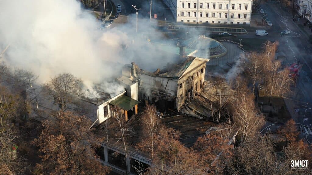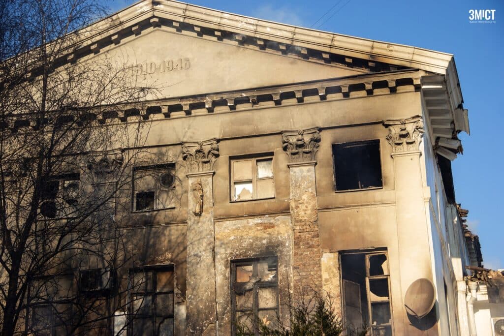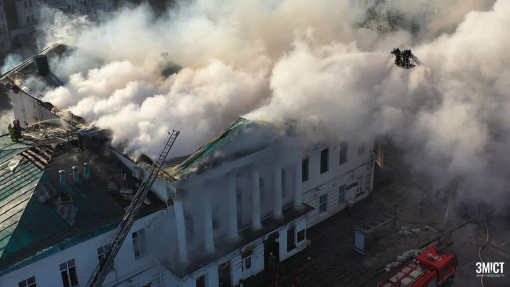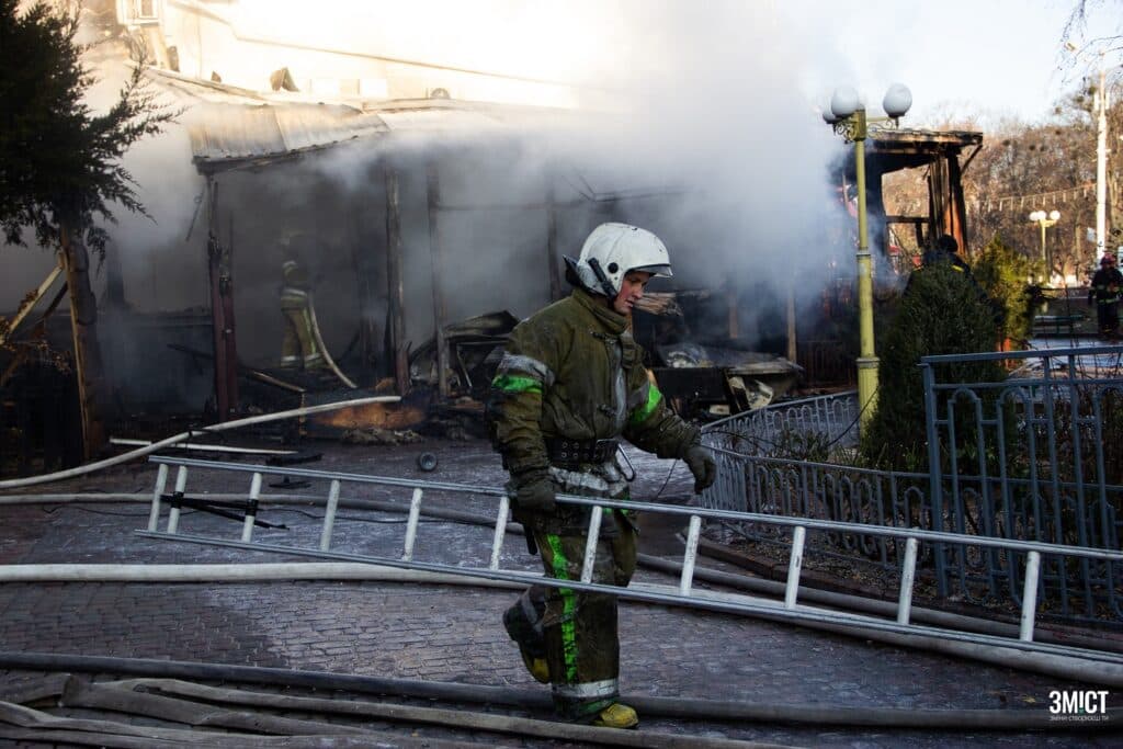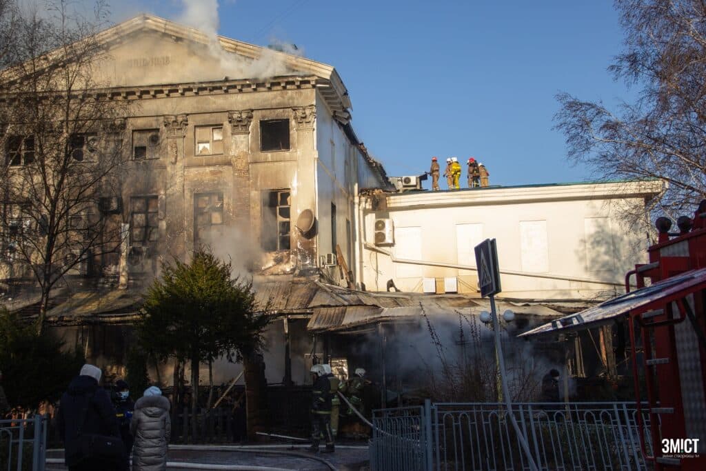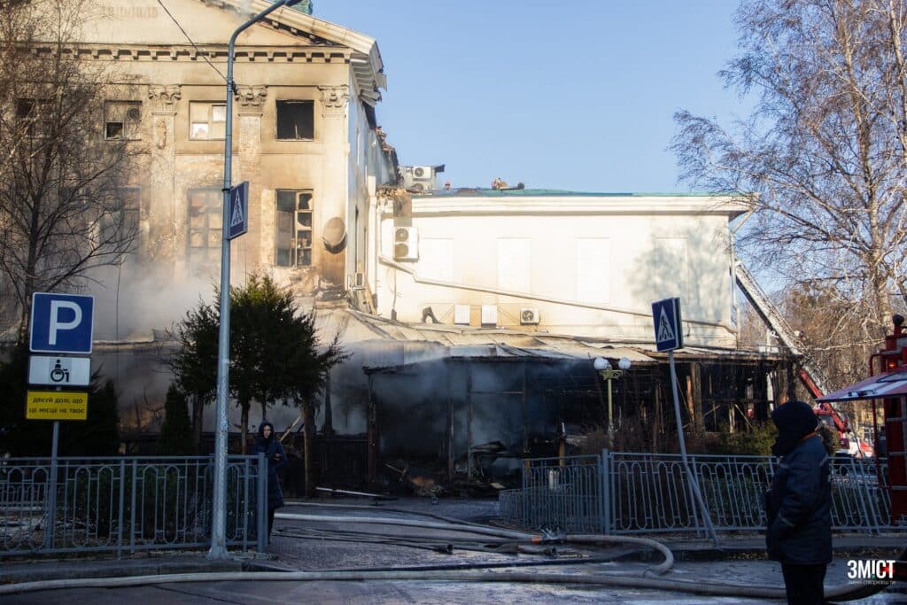Пожежа в історичній будівлі на вул. Соборності, 31 почалася 9 грудня. Дзвінок до ДСНС надійшов о 4:30.