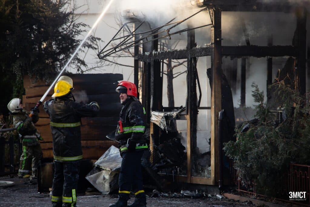 О 09:15 пожежу локалізували. У будівлі згорів центральний і правий корпус. Лівий корпус вдалося зберегти.
