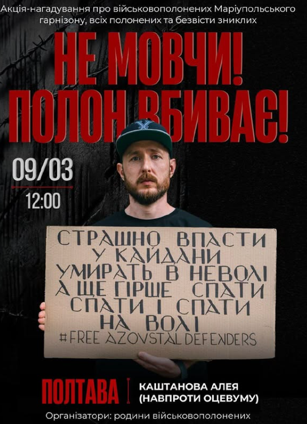 У Кременчуці містяни зберуться о 12:00, біля акціонерного товариства «КРЕДМАШ». Полтавцям потрібно підійти 9 березня на 12:00 до Каштанової Алеї. Організаторами є родини військовополонених.