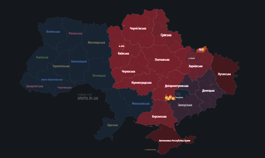 Балістичні та дронові загрози для Полтавщини: мапа тривог 11 лютого
