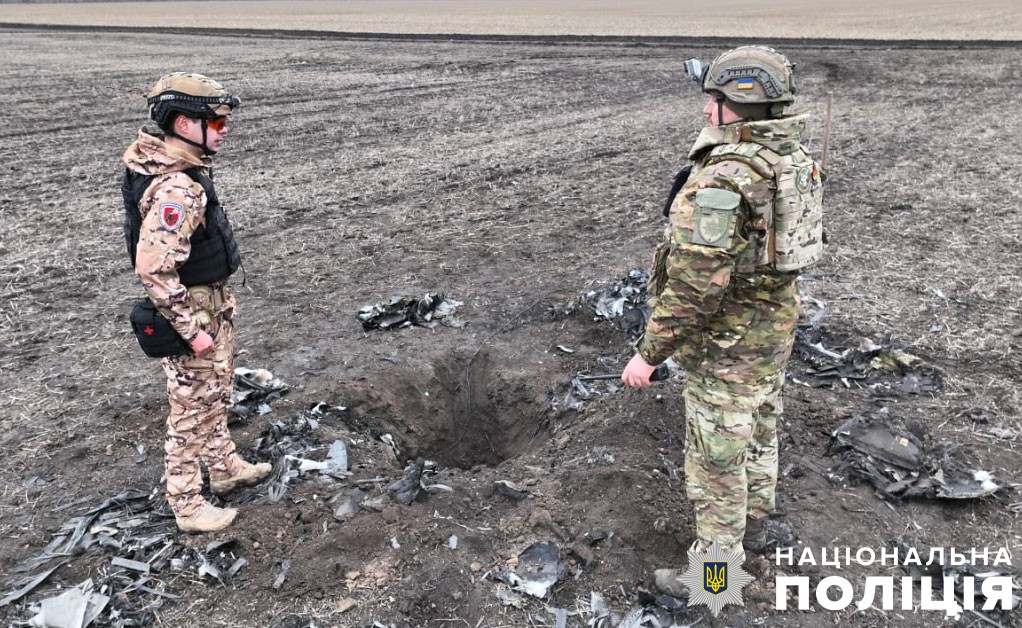 Сили оборони збили російські безпілотники на Полтавщині. Мобільна група вибухотехніків поліції оглянула залишки БпЛА та знешкодили їх бойові частини.