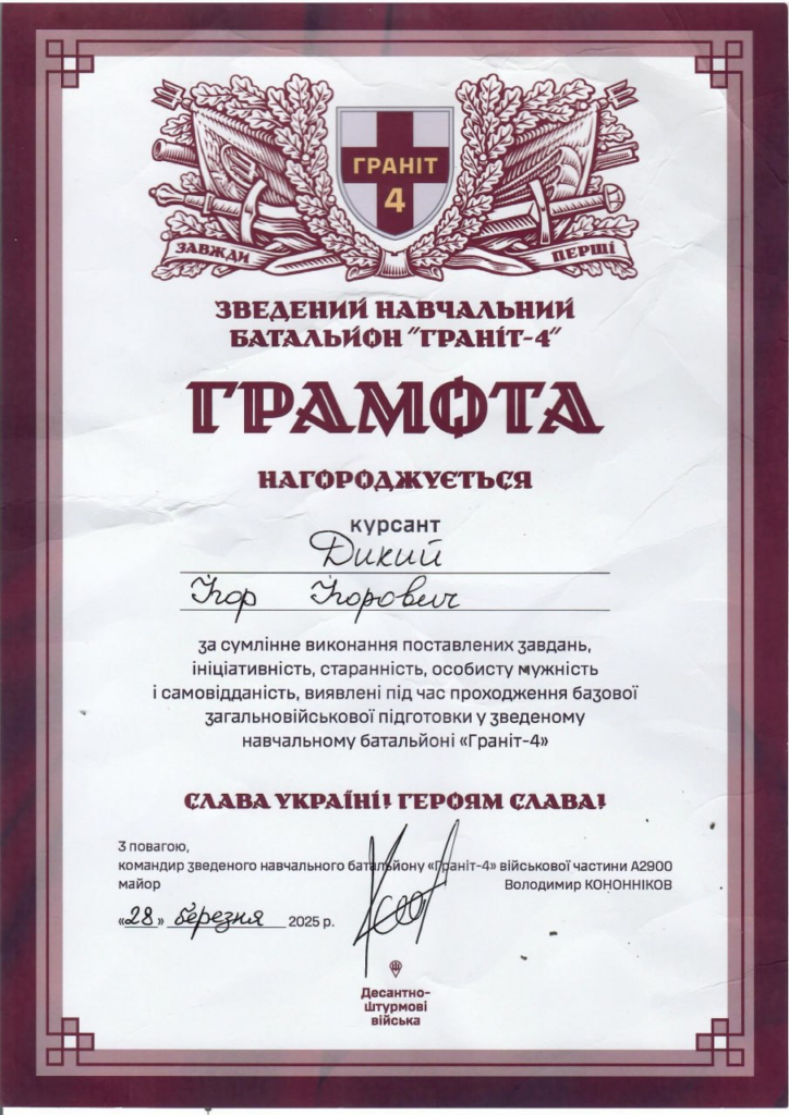 Життя захисника обірвалось 16 липня під час виконання бойового завдання на Сумщині. Прощання з Ігорем Диким запланували на 2 серпня о 10:00 у Свято-Успенському соборі.