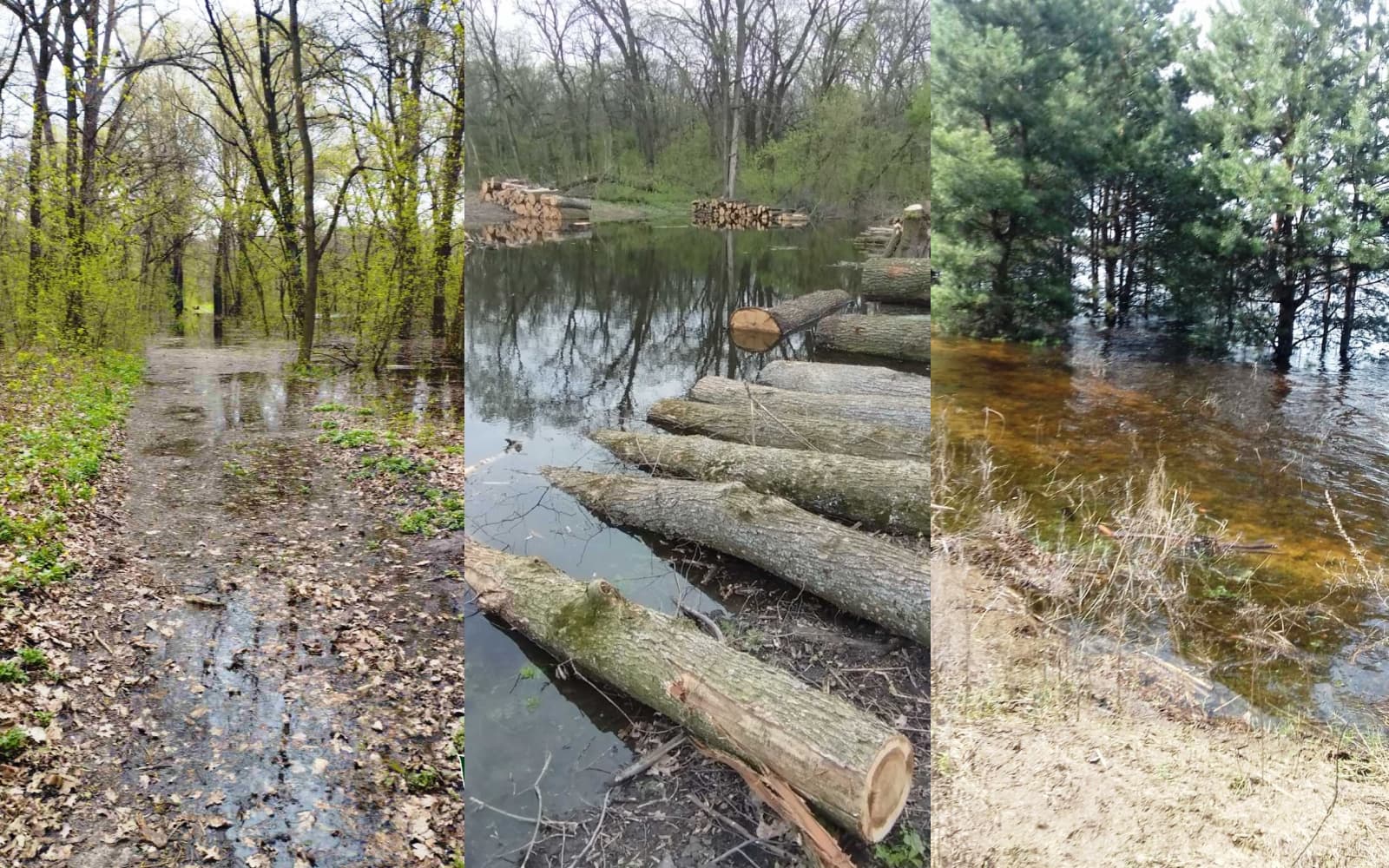 З квітня через каскад водосховищ на Дніпрі почали пропускати весняне водопілля, а на Полтавщині оголосили червоний рівень небезпеки. Через це ліси, які знаходяться поблизу Кременчуцького та Кам’янського водосховищ, стоять у воді.