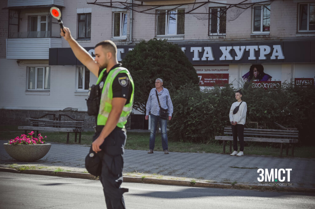 На перехресті вул. 1100-річчя та Європейської поліція зупинила потік машин. О 09:00 полтавці зупинилися, щоб згадати полеглих на війні.