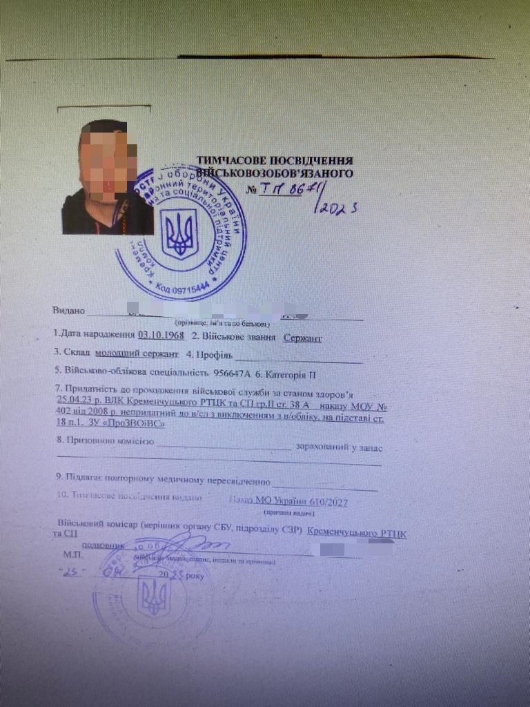 Чоловіка затримали в пункті пропуску «Бронниця». Під час паспортного контролю вартові кордону встановили, що Тимчасове посвідчення військовозобов'язаного та Довідка військово-лікарської комісії фіктивні та містять ознаки підробки.