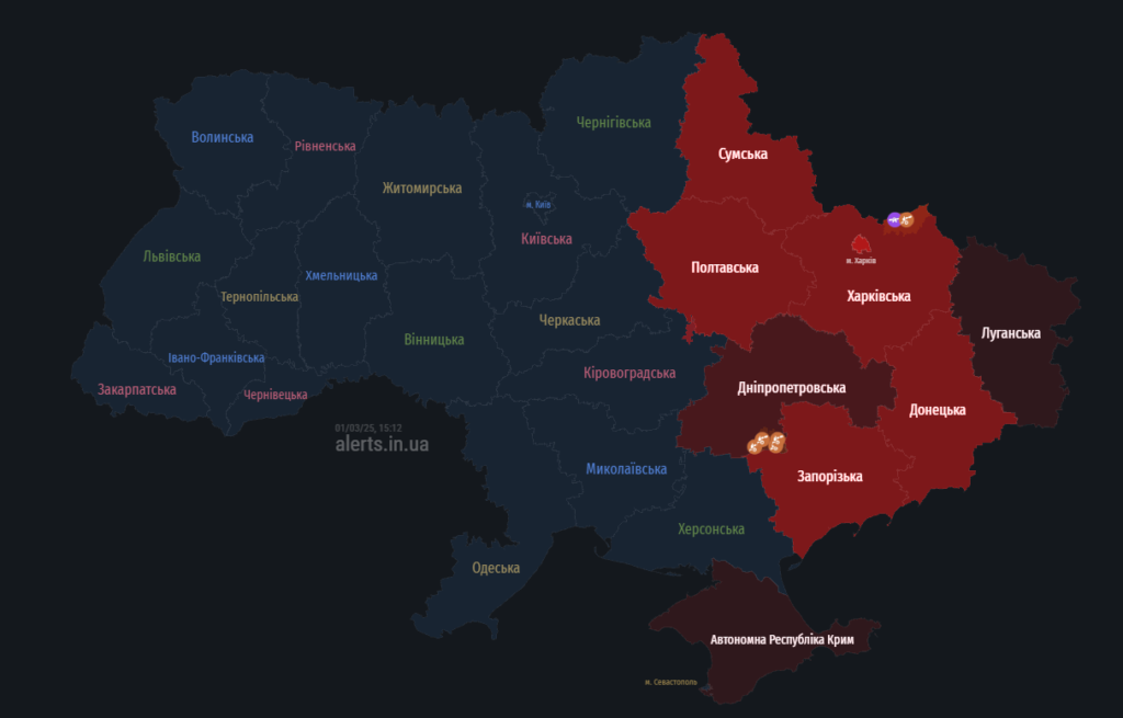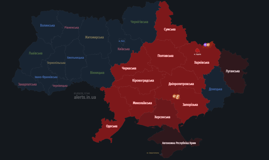 Ворожі цілі загрожують Полтавщині: мапа тривог 1 березня