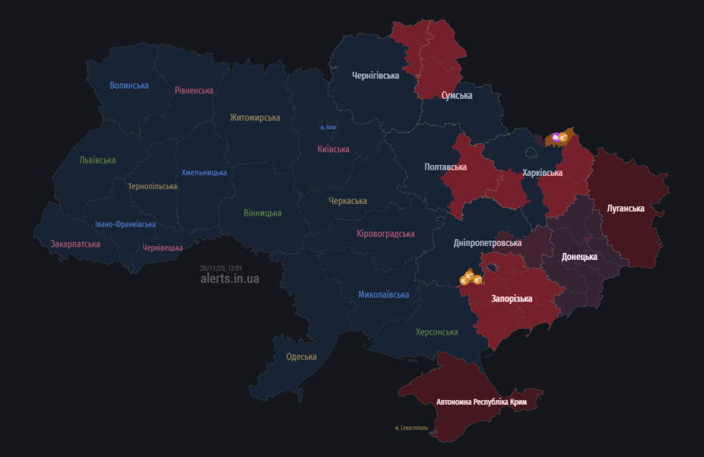 Чому в Полтавському районі лунає сирена: мапа повітряних тривог 26 листопада