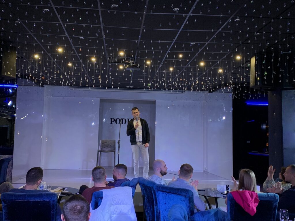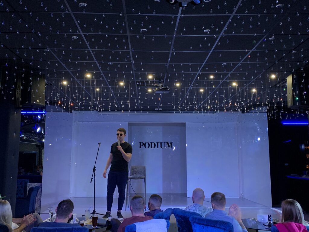 Першим виступив Денис Дума. Він розповів, що родом з Полтавщини. Стендапом займається 7 років, а в Полтаві виступає вперше.