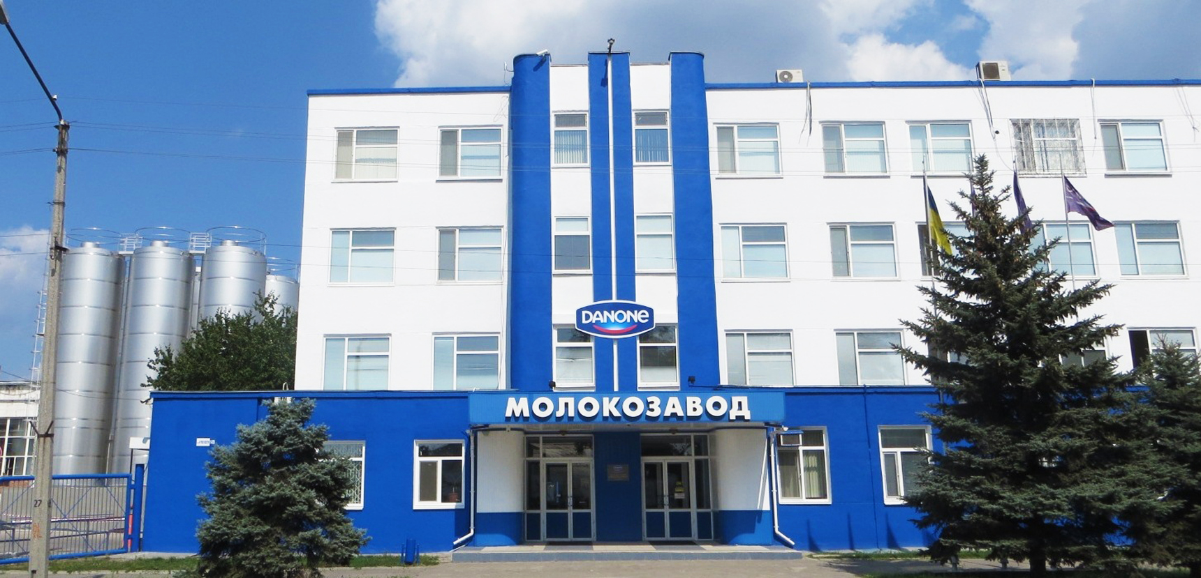 Заводи компанії Danone до війни працювали у двох містах: Кременчуці та Херсоні. Робота останнього зупинилася у лютому 2022 року, а працівникам допомагали евакуюватися. Завод зазнав пошкоджень внаслідок бойових дій: частково пошкоджені дах адміністративної будівлі та кілька ферментаційних місткостей.