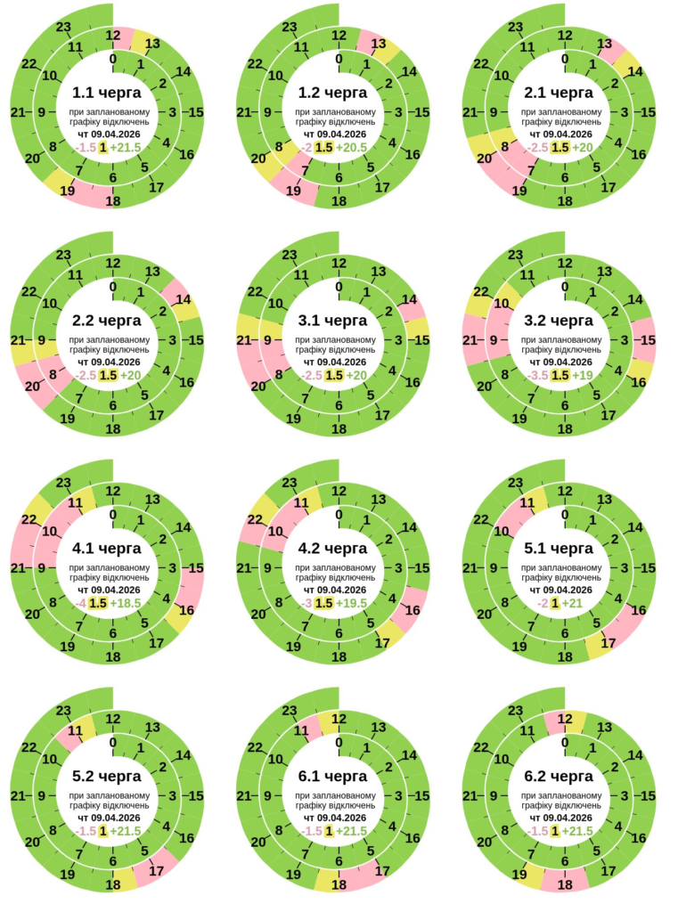 На основі шаблону графіку на тиждень створеному НЕК «Укренерго» у якому вказують тривалість відключень для кожної підчерги. Складаючи графіки ГПВ враховують кількість черг, які одночасно вимикатимуть, після чого автоматично формують графік на добу. Нагадаємо що кожна з шести черг має по дві підчерги, у списках зазначені населені пункти, вулиці та будинки. Перевірити свою оновлену чергу та підчергу можна за посиланням.