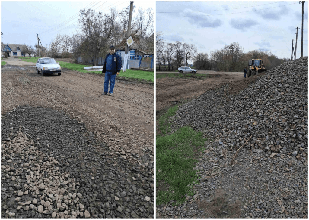 У селах Садове та Єньки щебенем засипали вибоїни на дорогах з твердим покриттям. Техніку надала сільськогосподарська компанія, роботи виконали підприємці.