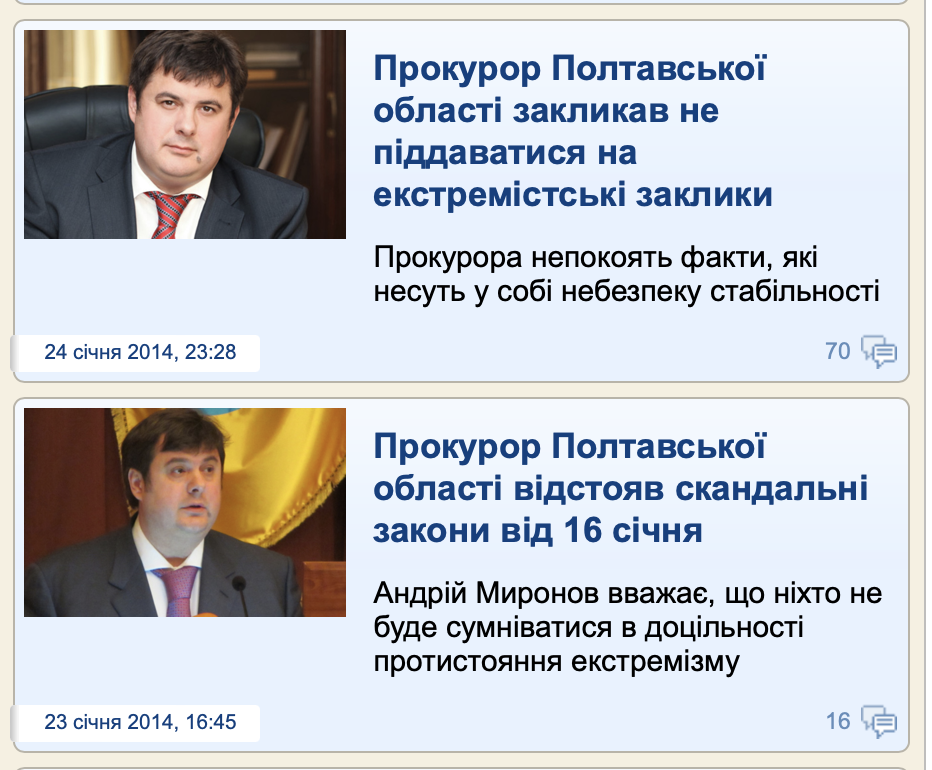 Кар’єра Миронова в органах прокуратури розпочалася ще у 2006 році, коли він очолив прокуратуру тодішнього Октябрського району Полтави. У 2011 році він став прокурором Полтавської області, але залишив посаду у лютому 2014 року на тлі Революції Гідності, вийшовши на пенсію за вислугою років у віці 44 роки. Тепер Миронов проявляє активність у бізнесі, пов’язаному з арештованими активами.