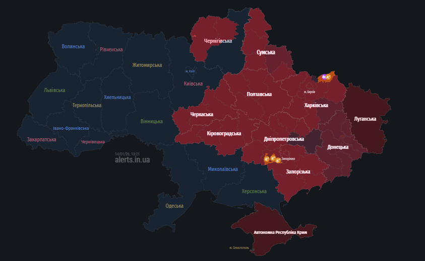 ЗМІСТ писав, що у ніч та вранці 13 січня Полтавщина стала однією з головних цілей комбінованої повітряної атаки ворога. Зафіксований рух великої кількості ударних дронів та пуски крилатих ракет.