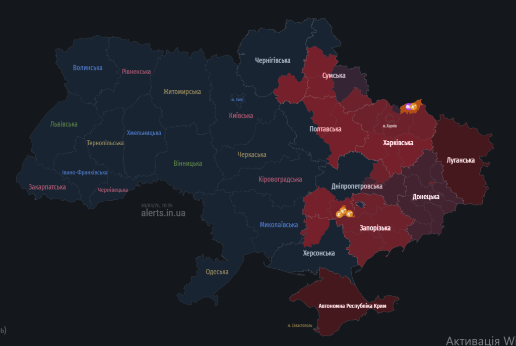Дронові та балістичні загрози для Полтавщини: ситуація 30 березня
