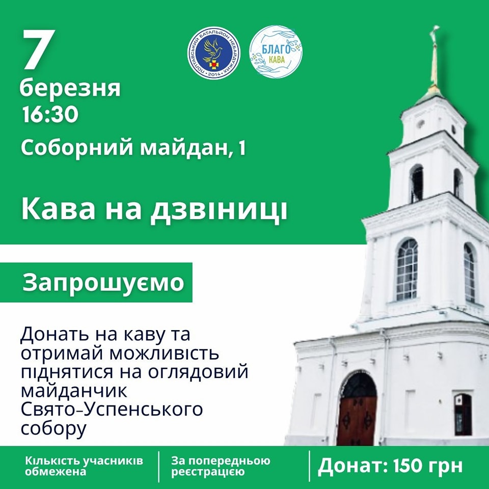 Полтавців запрошують піднятися на дзвіницю Свято-Успенського собору, аби помилуватися краєвидами міста з Іванової гори. У вартість підйому входить кава.