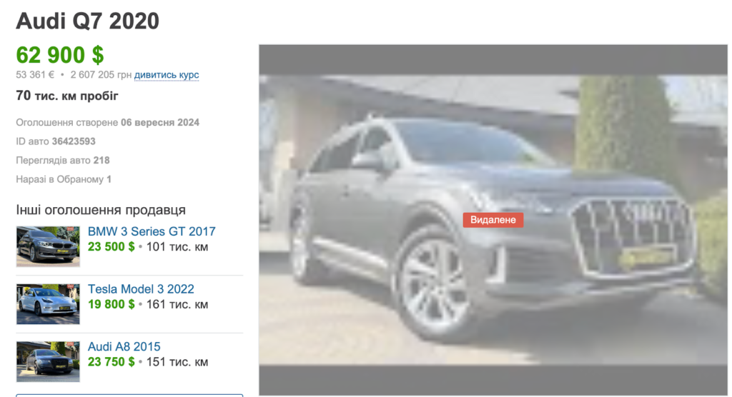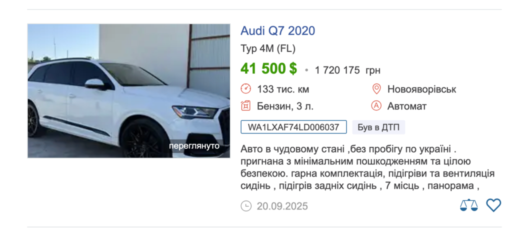 Такий продаж дозволив обґрунтувати майбутню покупку родини керівника управління – Audi Q7 2020 року за 1,6 млн грн, яку вона здійснила у 2024 році.