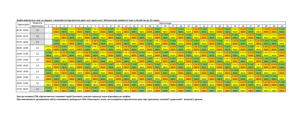 Тепер при застосуванні ГПВ, відключаються споживачі однієї черги відповідно до графіку. Але при неможливості дотриматися ліміту споживання, доведеного «Укренерго», можуть застосувати відключення двох черг одночасно, основної і додаткової – вказаної в дужках.