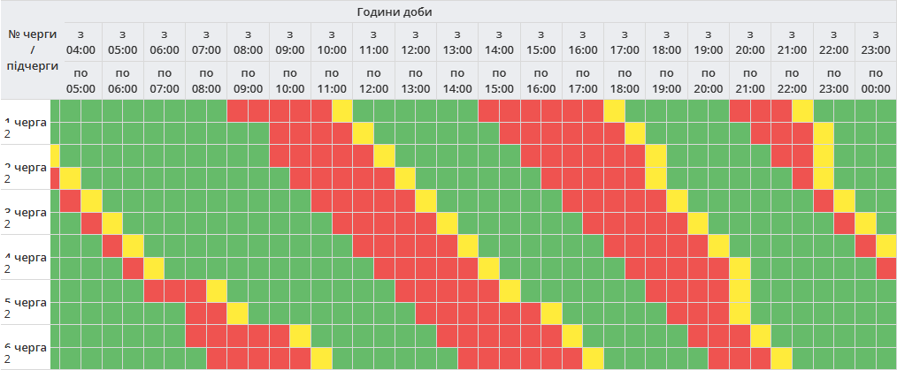 Знеструмлення охоплюють шість черг споживачів. Вони триватимуть від півгодини до трьох годин для кожної з черг у різний час доби: