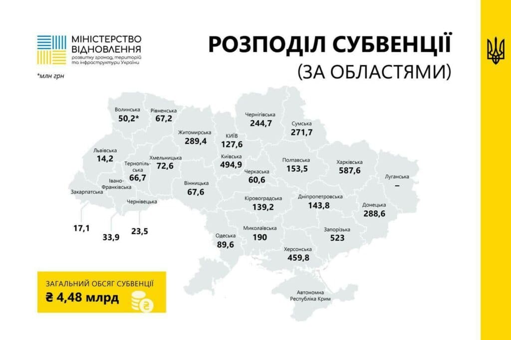 Полтавщині розподілили 153,5 млн грн субвенції на відновлення та розвиток інфраструктури. Для отримання грошей громади мають подавати свої проєкти на відбір.