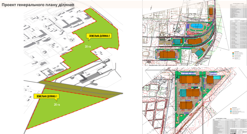 Архітектурний генеральний план показує як об’єкти можуть бути розміщені, але саме інвестори вирішуватимуть логістичне розташування. Потужності розмістять так, щоб максимально ефективно використали площу парку.
