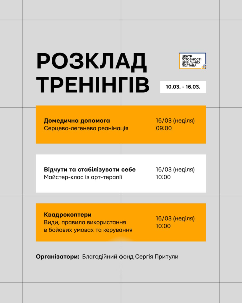 Розклад нових занять повідомили у «Центрі готовності цивільних» 11 березня.