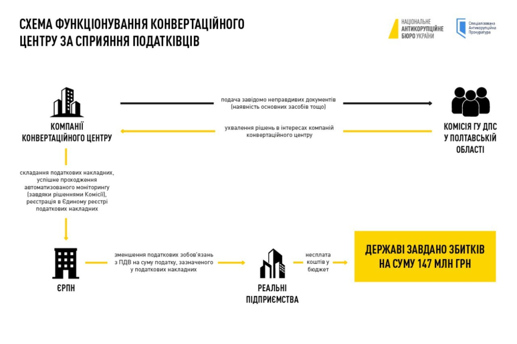 Масштабний конвертаційний центр міг діяти за участі екскерівництва Державної податкової служби. Зокрема колишньої заступниці начальника Головного управління ДПС у Полтавській області.