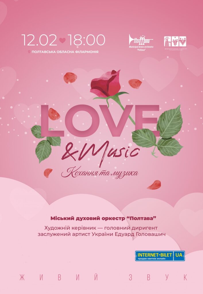 Міський духовий оркестр «Полтава» під орудою головного диригента Едуарда Головашича запрошує на спеціальну концертну програму до Дня закоханих.