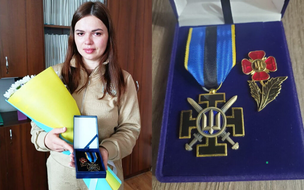 Сестрі полеглого захисника вручили почесну нагороду Головнокомандувача Збройних Сил «Комбатантський хрест» та нагрудний знак «Честь та Пам’ять».