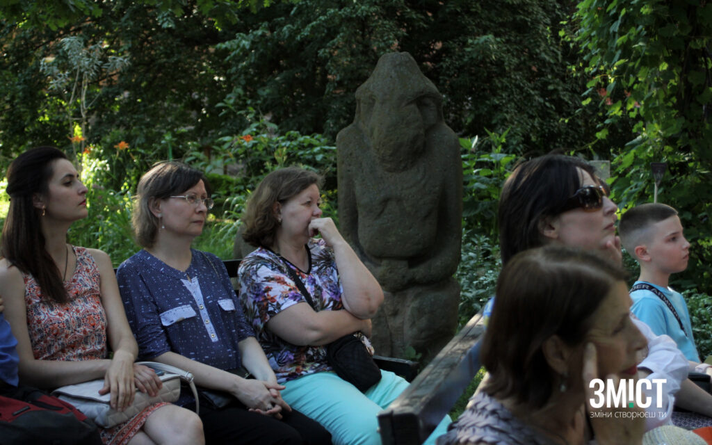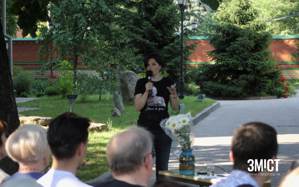 Тіна Пересунько прочитала лекцію у дворику Полтавського краєзнавчого музею 22 червня. Вона – наукова співробітниця Інституту української археографії та джерелознавства, засновниця Інституту Леонтовича та авторка книги «Культурна дипломатія Симона Петлюри: Щедрик проти русского мира. Місія капели Олександра Кошиця (1919-1924)».