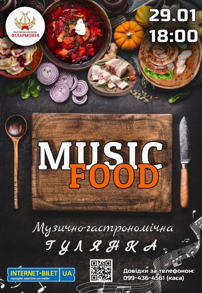 Музично-гастрономічна гулянка від артистів філармонії. На концерті виступатимуть заслужені артистки України Валентина Колісник, Тетяна Садохіна, Наталія Іванченко, гітарист-віртуоз Олег Павленко, лауреатки міжнародних конкурсів Наталія Шинкаренко, Катерина Юрченко, Вікторія Бовтік, Марина Ткаченко, Юлія Герасименко та ансамбль «Полтава».
