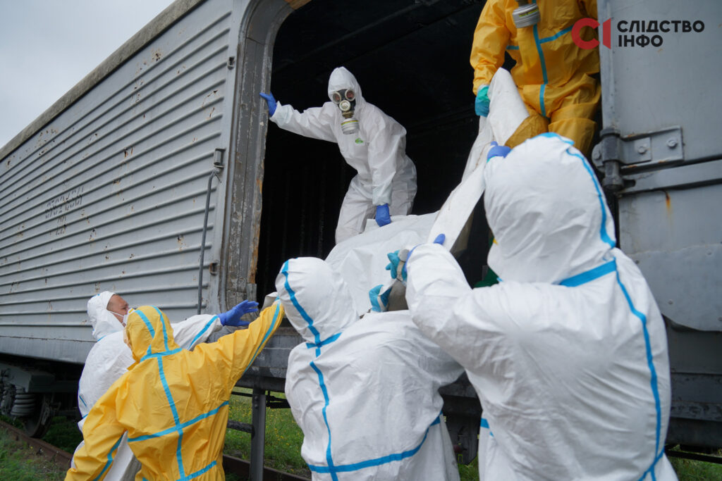 Через те що морги не здатні вмістити таку кількість тіл, усі процеси проводять просто біля залізничної колії у польових умовах. Тут працюють слідчі та оперативні підрозділи, криміналісти, судово-медичні експерти та вибухотехніки. Про це «Слідству.Інфо» розповіла судово-медична експертка Віталіна Мороз.