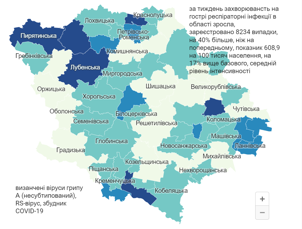 Громади Полтавщини з найвищим показником захворюваності на ГРВІ: