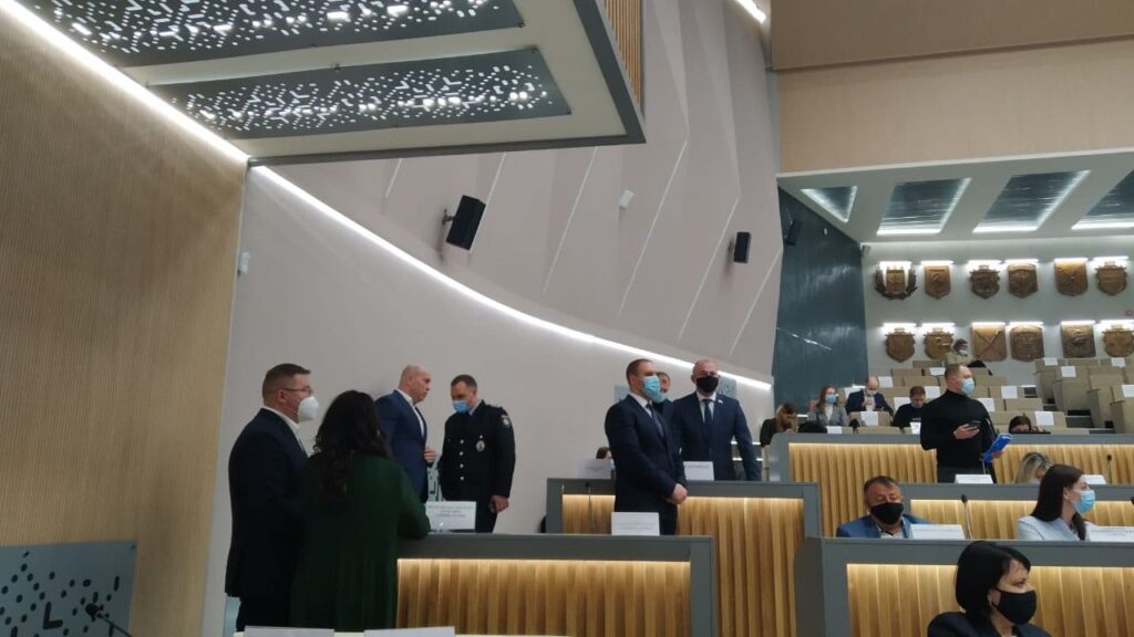 На засіданні присутні народні депутати Костянтин Касай та Ілля Кива. На пленарному засіданні першої сесії Полтавської обласної ради мають обрати голову та його заступників.