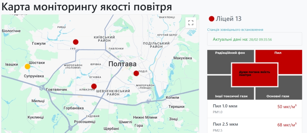 Нагадаємо, що в середині лютого в області фіксували погіршення стану атмосферного повітря – від доброго в Чорнухах до шкідливого для чутливих груп у Полтаві.