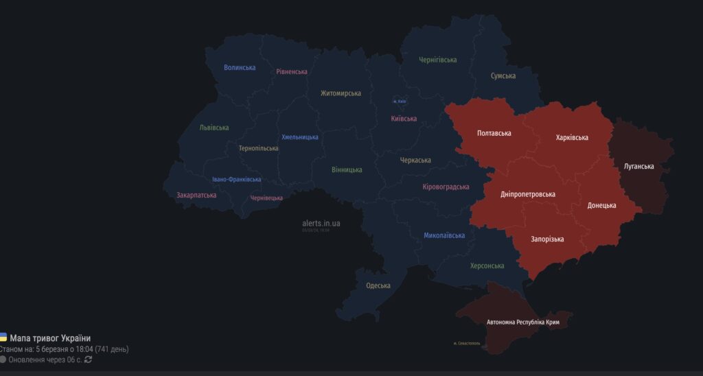 Карта тривог на Полтавщині та в сусідніх областях