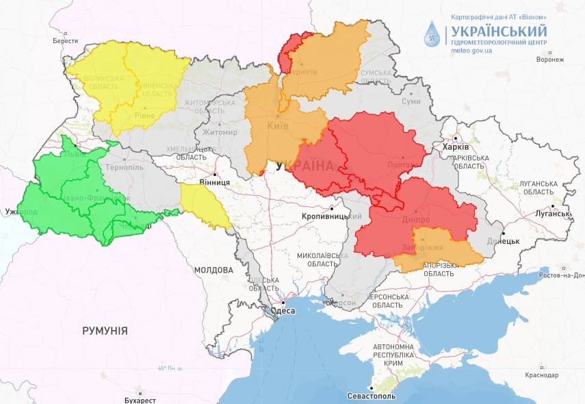 Метеорологи попереджають про часткове затоплення прируслових територій у прирічкових населених пунктах на Кременчуцькому, Кам’янському, Дніпровському водосховищах у Черкаській, Полтавській, Кіровоградській, Дніпропетровській областях.